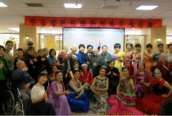 践行党的十九大精神,丰台区侨联开展公益行活动,11月23日,区侨联带领方庄侨联老年模特队慰问丰台区椿萱茂(青塔)老年公寓,老年模特队本着“老有所为”、“老有所乐”、“以老为老”服务的精神,演出了服装秀、民族舞、国标舞等精彩节目,老年公寓的老人们也积极参与,表演了小合唱、诗朗诵等节目。慰问活动充分展现了在党的带领下,在十九大精神鼓舞下,丰台区归侨侨眷们、各界老人们积极向上、跨越年龄的生活态度和精神风貌。