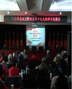 三是组织开展“解读十九大报告精神”专题讲座。11月20日下午,组织50余名地区归侨、侨眷代表、社区侨务工作者,在地区办事处五楼会议室特聘朝阳区委党校副教授姜岩进行 “解读十九大报告精神”专题讲座。