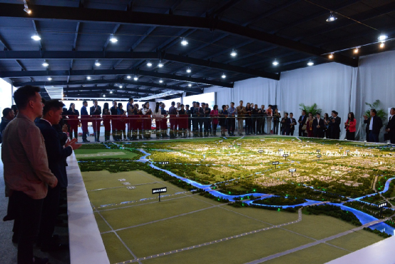 随后,“故乡行”一行人又实地考察森林公园月岛观景台。大家在观景台上可以远眺到行政区热火朝天的建设进展。