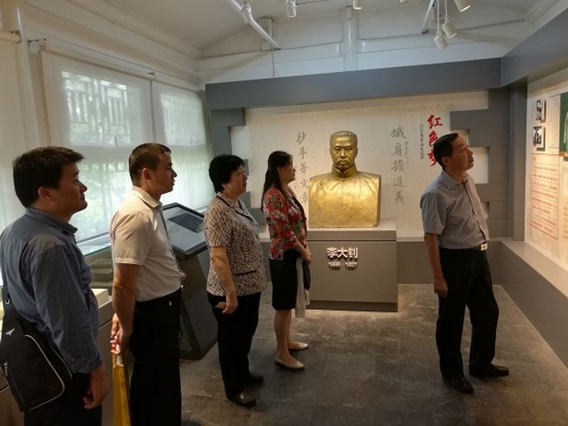 全体党员参观了李大钊纪念室、周恩来纪念室、五团体会议室等,墙上的一幅幅黑白照片,跟随着党的早期足迹,再现了当年的场景,呼吸着革命领导人留下来的革命气息,领悟着革命前辈的精神,敬佩之情在心底油然而生,党员们再次感受到了“今天的生活来之不易。”这句话的深刻含义,大家再次感受到,没有那个红色年代革命先辈们对共产主义信念的孜孜追求,没有千千万万共产党员们对革命工作的前仆后继,就没有今天日新月异的中国。