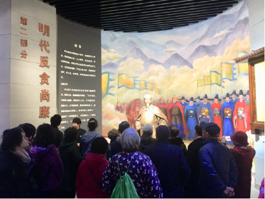 “明镜昭廉”历史文化园通过大量的史实材料、人物塑像、实物模型等方式,展示明代反贪、惩贪、治贪的思想、实践和经验教训,以“明镜昭廉”为主题,表达了以史为鉴,彰显廉洁的深刻含义,弘扬了中国传统文化中廉洁奉公、勤政为民的文化精髓。在参观中,全体党员干部认真了解了明代如何运用回避制度、监察制度、考核制度以及反腐律法等建立反贪体系,促进官员清廉从政;学习了海瑞、夏原吉、于谦、况钟等明代清官两袖清风、清正廉洁的事迹;并通过严嵩、魏忠贤、郭桓案、刘观案等明代典型贪腐人物及案件的剖析,对自身起到了很好的警示作用。