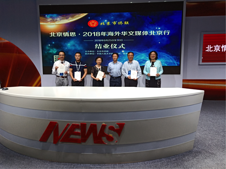 2018年6月29日下午,为期6天的“北京情思•2018年海外华文媒体北京行”活动圆满结束。北京市侨联党组书记赵宏生、主席荣洋、副主席苏泳及有关单位领导出席了欢送会。